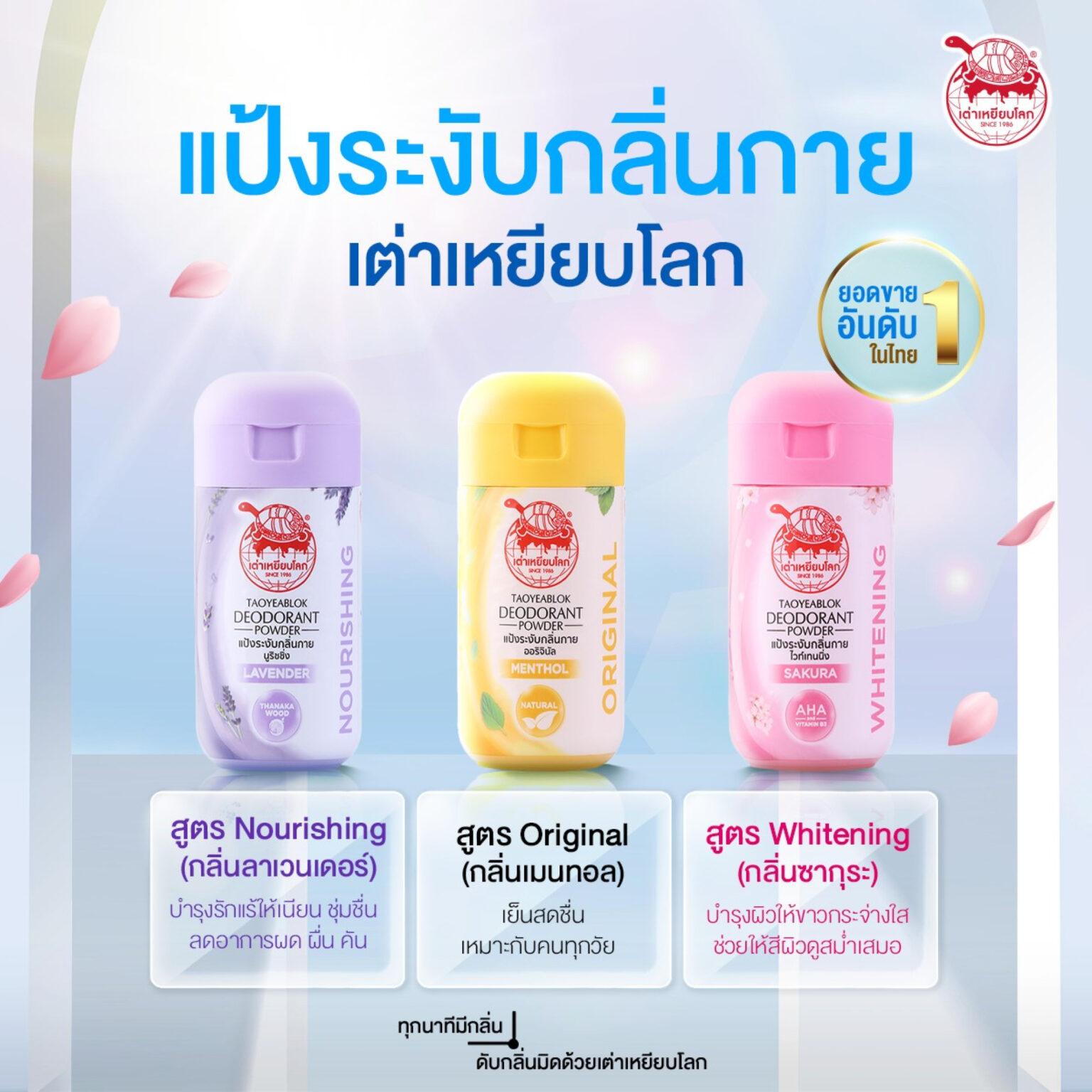 “เต่าเหยียบโลก” ตำนานแป้งระงับกลิ่นกายจากสมุนไพรในห้องโต๊ะเครื่องแป้ง Pantip ที่ส่งต่อคุณภาพกันแบบปากต่อปาก เตรียมขึ้นแท่นเบอร์ 1 ผลิตภัณฑ์ระงับกลิ่นกายจากธรรมชาติของไทย “คุณนพวิทย์ จันทิพย์วงษ์” ทายาทรุ่นสอง เผยปี 2568 เดินหน้ารุกตลาดเต็มสูบทั้งออฟไลน์-ออนไลน์ ขยายไลน์สินค้า ยกระดับการผลิตเต็มระบบ คาดยอดขายปีนี้โต 300 ล้านบาท พร้อมประกาศเป้าหมาย 3-5 ปีข้างหน้า มุ่งเป็น Top 3 ตลาดรวมผลิตภัณฑ์ระงับกลิ่นกายของประเทศ